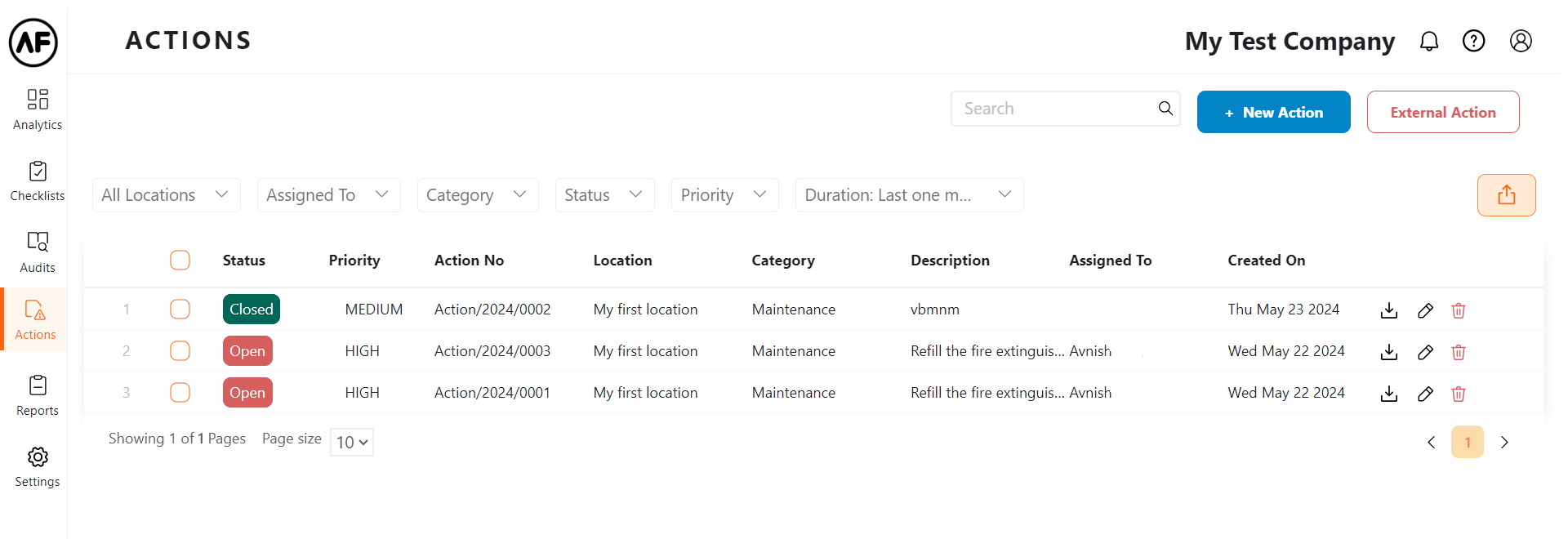 An action may be Open, i.e., it needs to be attended to. The admin has to assign it to a user, so that they can perform the required task to address the Action.