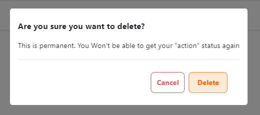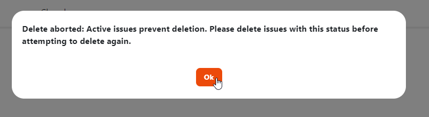 You can delete an action status if it is no longer required. Simply click on the trashcan icon on the right side of that label. In the dialog box that appears, select the Delete button to confirm.