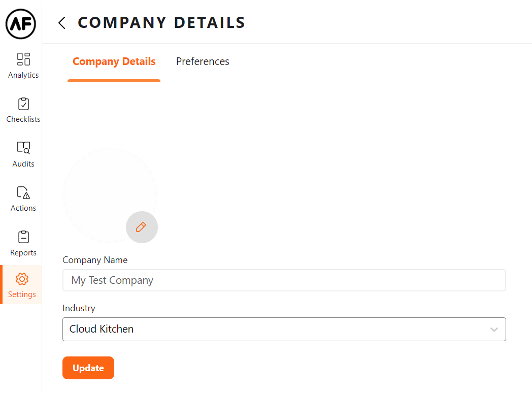 You can edit the name of your company under Company Name. Simply type in the new name, and click on the Update button.
