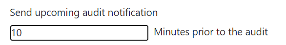E.g., if you want to inform users about upcoming audits 1 hour in advance, you can enter 60 minutes as the duration.