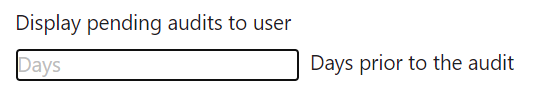 There may be many audits scheduled that users have to perform. To avoid displaying a long list of pending audits, you can set the number of days prior to an audit, from which the pending audit will be displayed to the user.