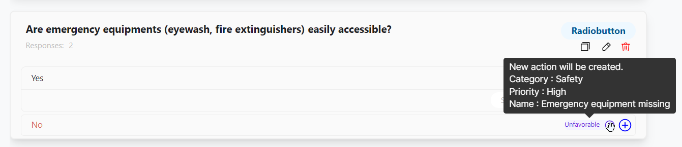 “Unfavourable” label will be visible next to the corresponding response in your checklist, indicating that some Action has been created for this reponse.