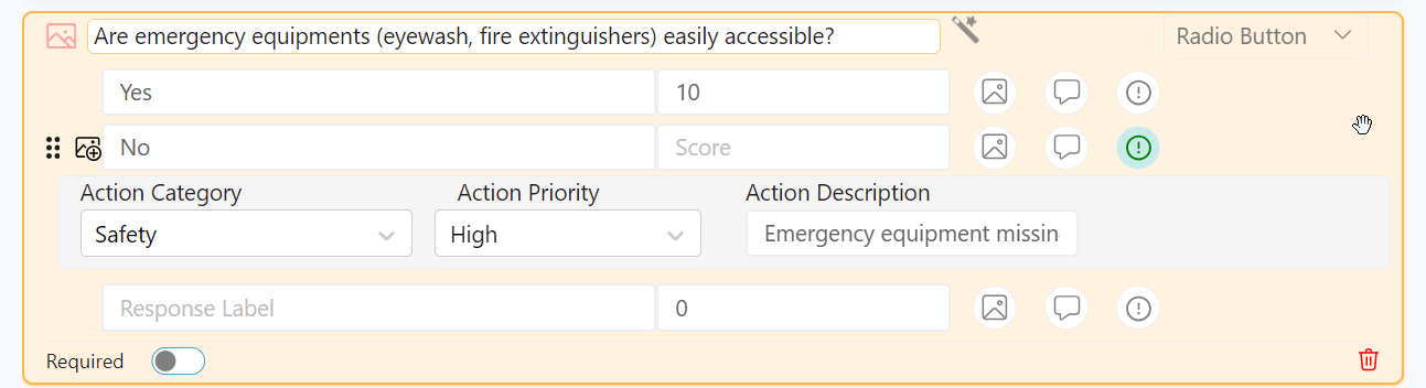 You can automatically trigger an Action based on responses provided by the user while performing an Audit. This gives you the ability to flag problems as soon as they are observed during the Audit, which can help fix the problem promptly.