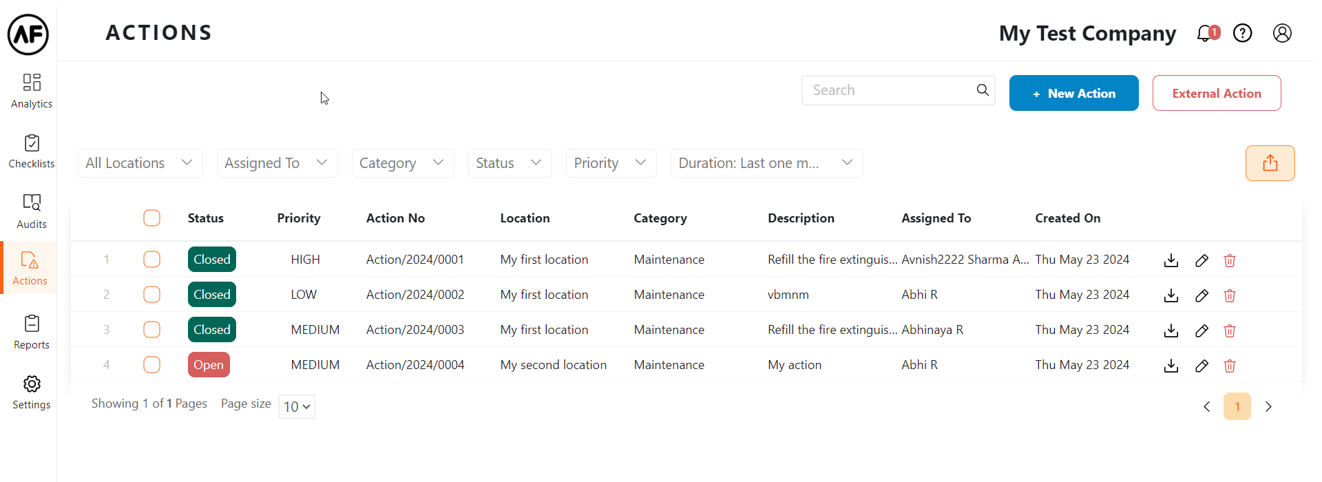 Note: Users assigned to the same location may be able to update action details even if the action was not assigned specifically to them.