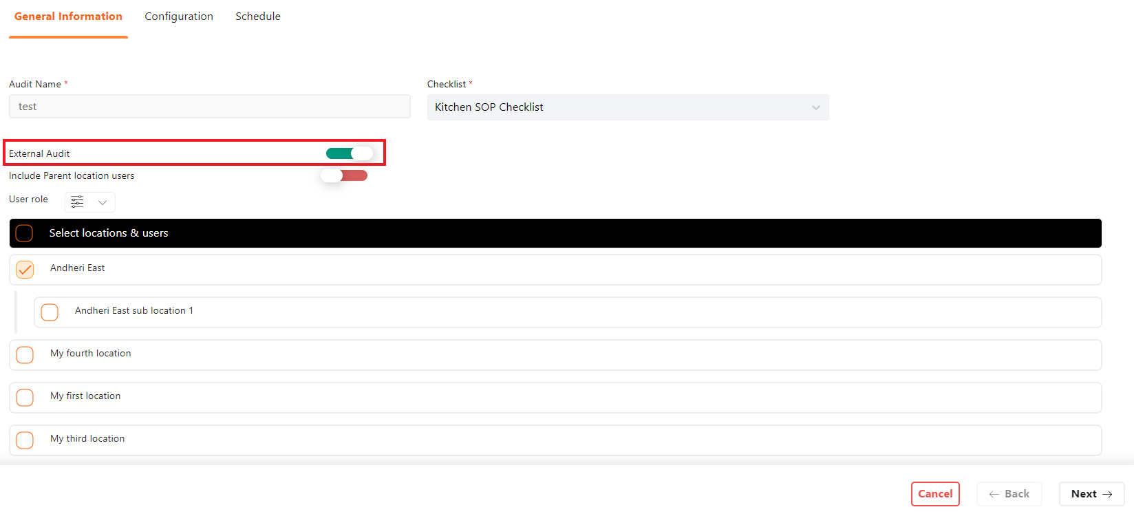 When creating an audit, you can enable the External Audit option, allowing even those users who are not registered on Auditflo, to perform the audit by scanning a unique QR code generated for the audit.