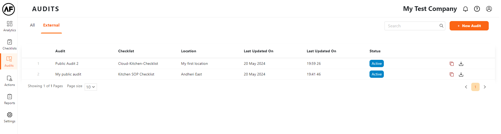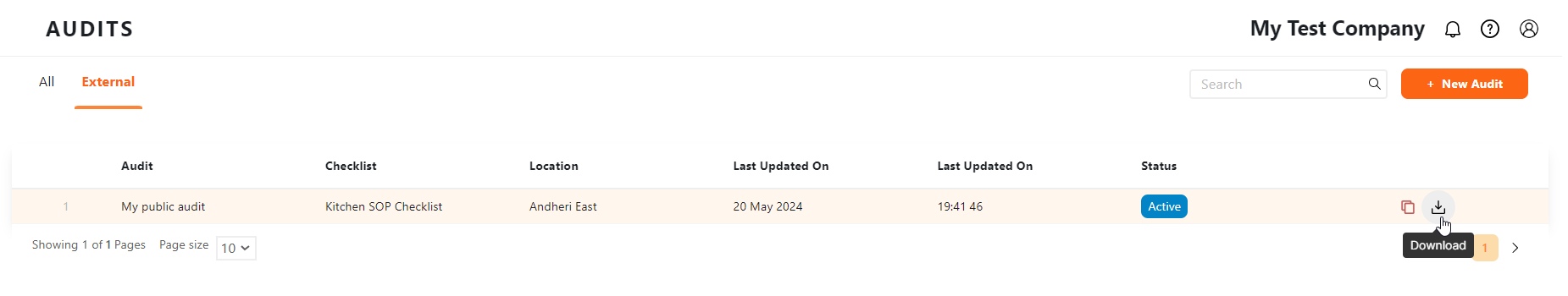 On the right side of each audit, you will find two options: Copy URL and Download QR. Both are described below.