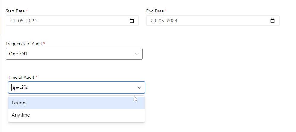 Finally, select the Time of Audit and enter the required timings if applicable, and click on Create.