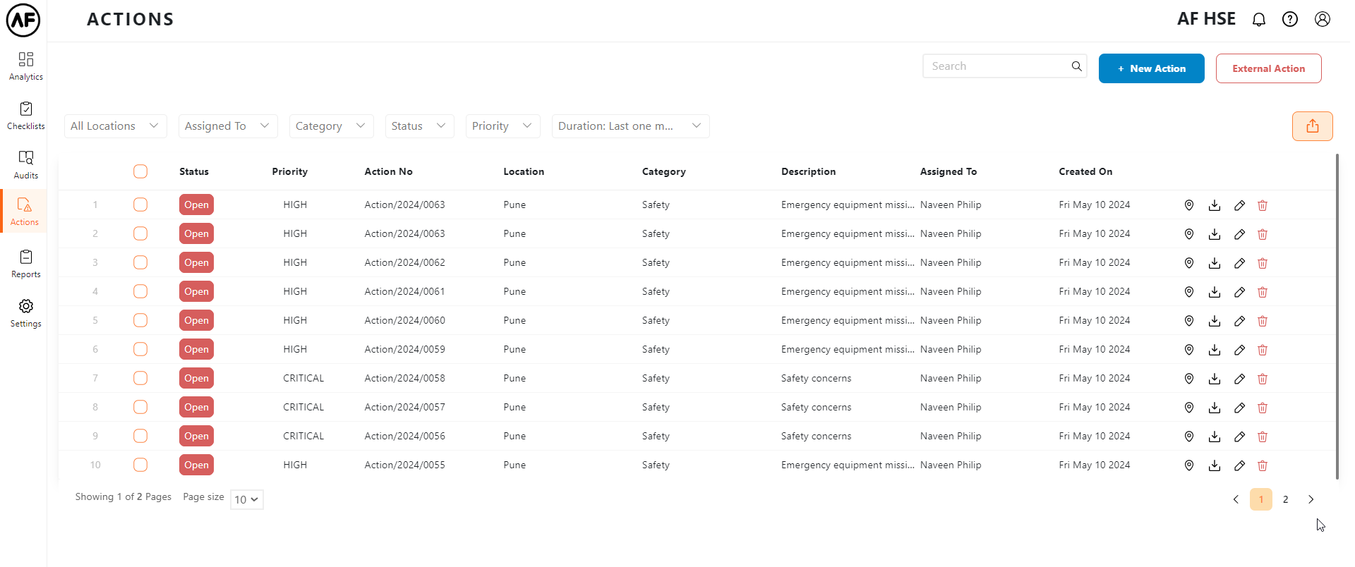 Actions can be of different priorities: Low, Medium, High or Critical.